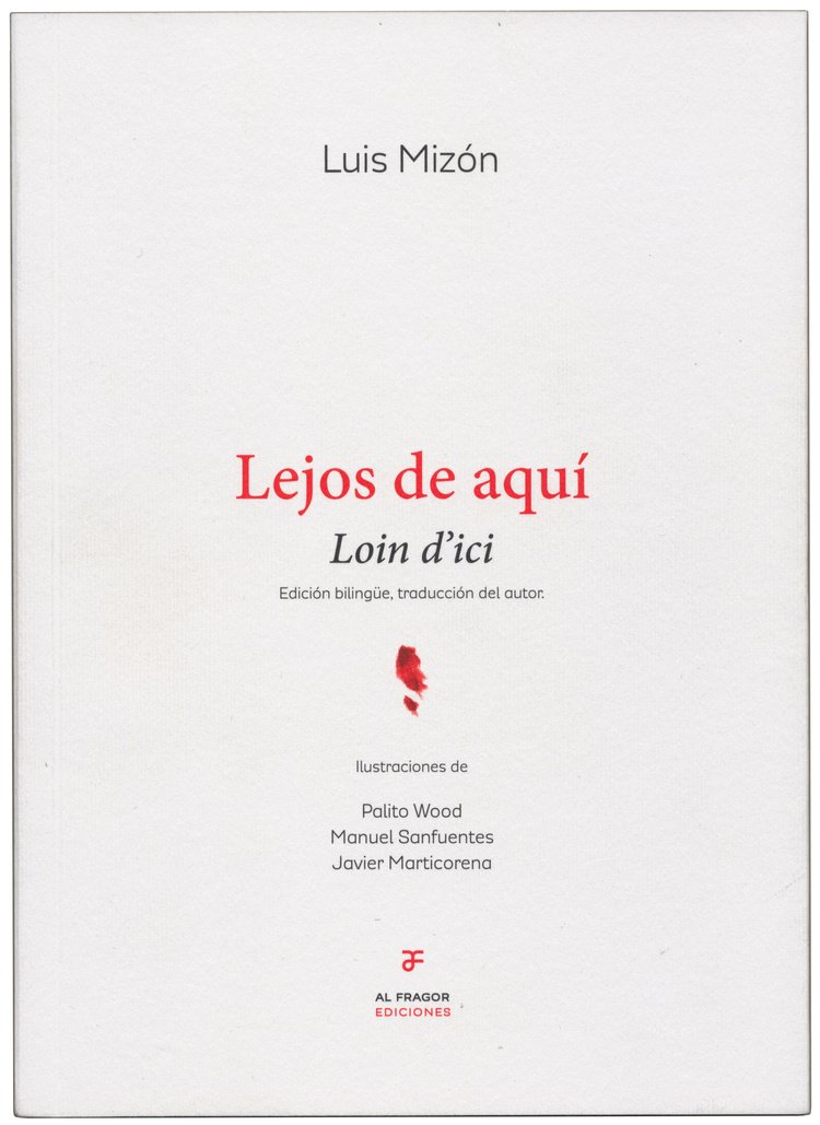 Edición bilingüe que reúne los poemas El barco de greda / Le bateau de terre cuite, Al Manar Ed., 2017; Soldador de murmullos / Soudeur de murmures – Lluvia de poemas paraguas de silencio / Pluie de poèmes parapluies de silence, Ed. Écarts 2010, y Ed. Folle Avoine 2017. Cada uno de los poemas ha sido ilustrado especialmente para la edición por los artistas Palito Wood, Manuel Sanfuentes y Javier Marticorena. Un obra inmensa y cordial que profundiza la distancia del exilio a través de una poesía destinada a recrear los lazos perdidos que la cultura omite. Luis Mizón publica Lejos de aquí para hacer suyo el desgarro con su propio destierro; a su vez, es tan próxima su palabra que ilumina; y la imagen que construye se ampara en la libre transparencia de lo que ve: nos muestra la humanidad indisoluble. En su conjunto, los tres poemas de Lejos de aquí, forman la trilogía del «coraje del poeta», y al mismo tiempo constituyen su debilidad y también su escudo; y construyen una imagen del presente que nos toca por su proximidad, más allá de la lengua y el lugar, como una manera de recorrer esa distancia practicada entre el partir y el volver.